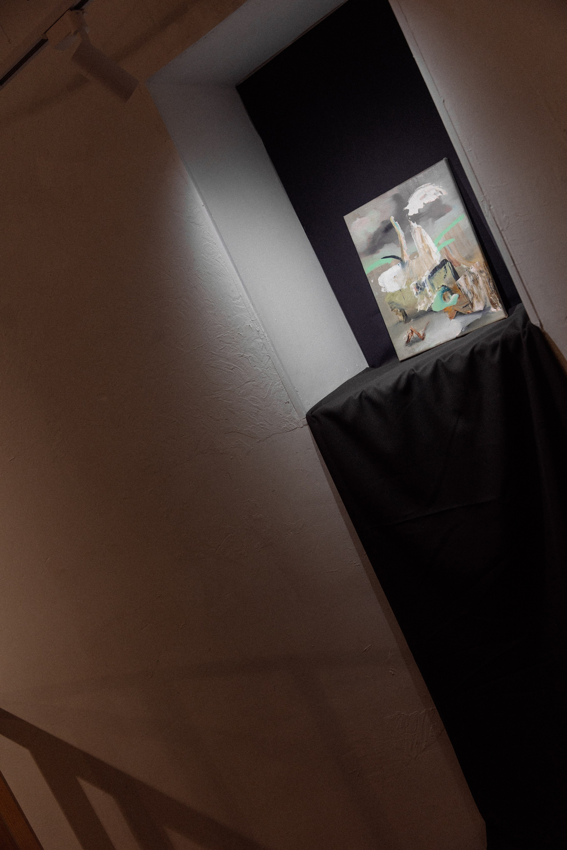 Входите, только осторожнее — здесь, в промежутках между воображаемыми стенами, перед вами — мнимые пространства. Эти пространства выходят за границы привычного континуума и состоят из иных отношений. Сюжет тут рождается не из образов и историй, а из их столкновения и распада: застывая, вспыхивая, перетекая. На стыках цвета и фактуры краски проступают очертания событий: то собираясь, то исчезая. Погружаясь в них, можно ощутить, как время течёт иначе — не линейно, по законам иного хронотопа.