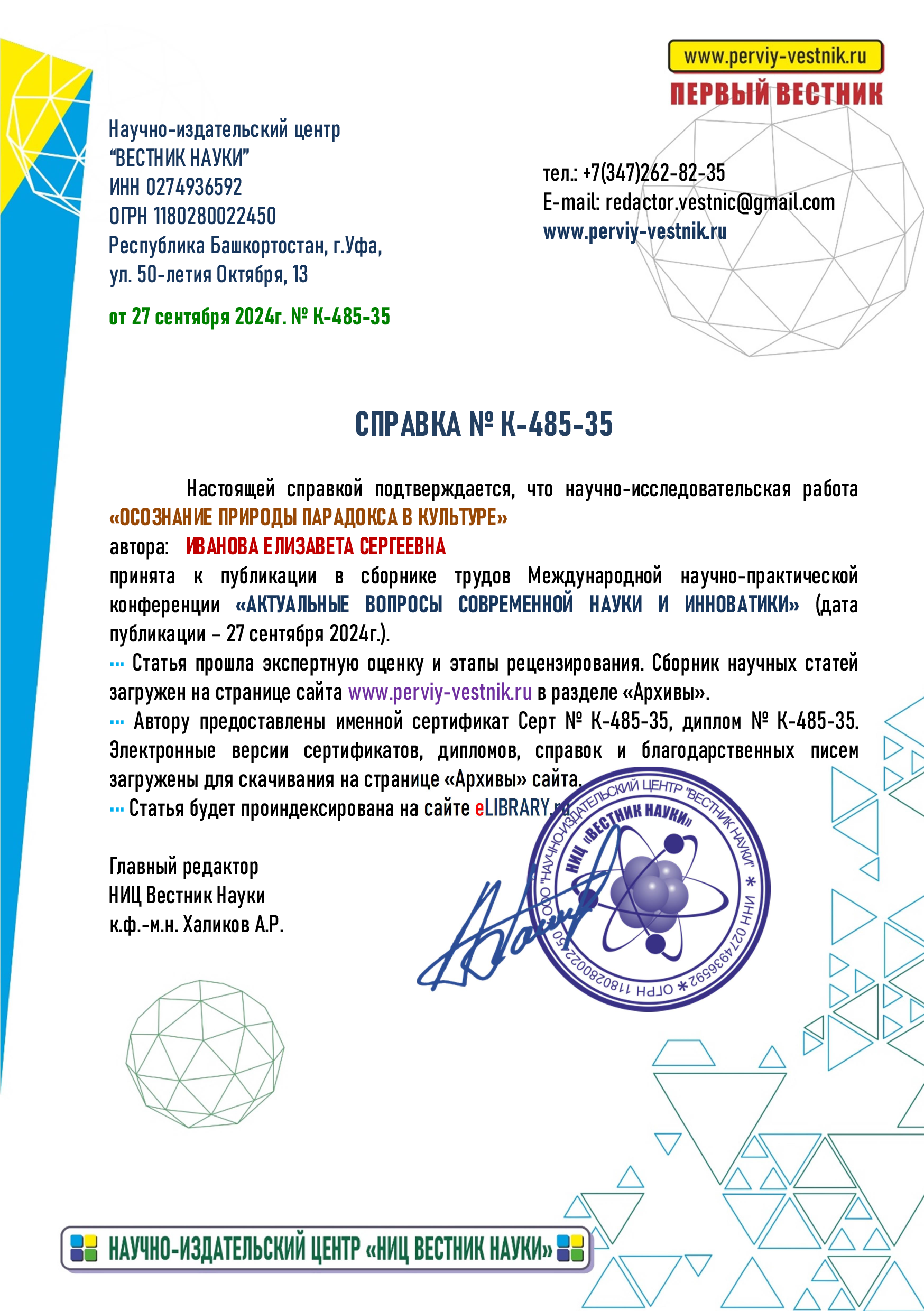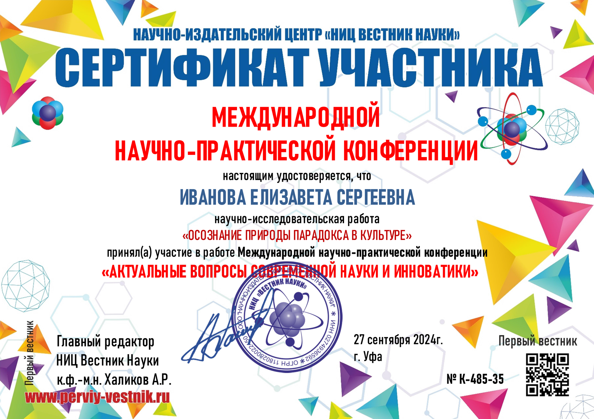 • «Пустота как парадокс культуры постмодерна» Всероссийская научно-практическая конференция молодых исследователей «Культурная среда и культурные практики. Опыт и инновации» СПбГИК Санкт-Петербург, 11–12 апреля 2024 г.
