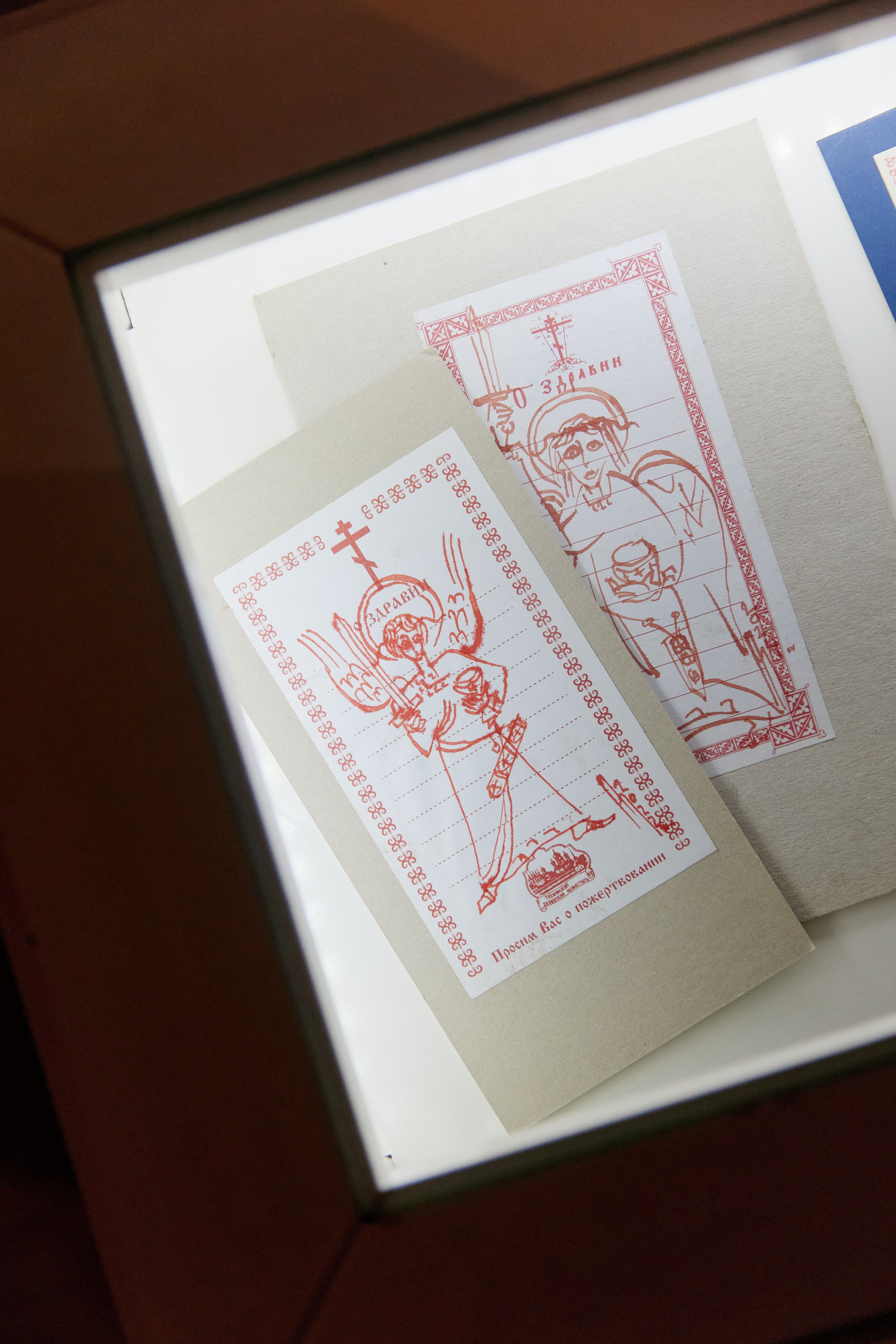 Представленная серия графических коллажей едино повествует о праздниках по православному канону, где образы и знаки созвучно, в унисон, сосуществуют со свидетельствами дня. Тут фрагментарность сиюминутного и бытового вступает в красноречивый диалог с возвышенным и вечным. Эта эклектика не разрушает целостность, но создает палимпсест.